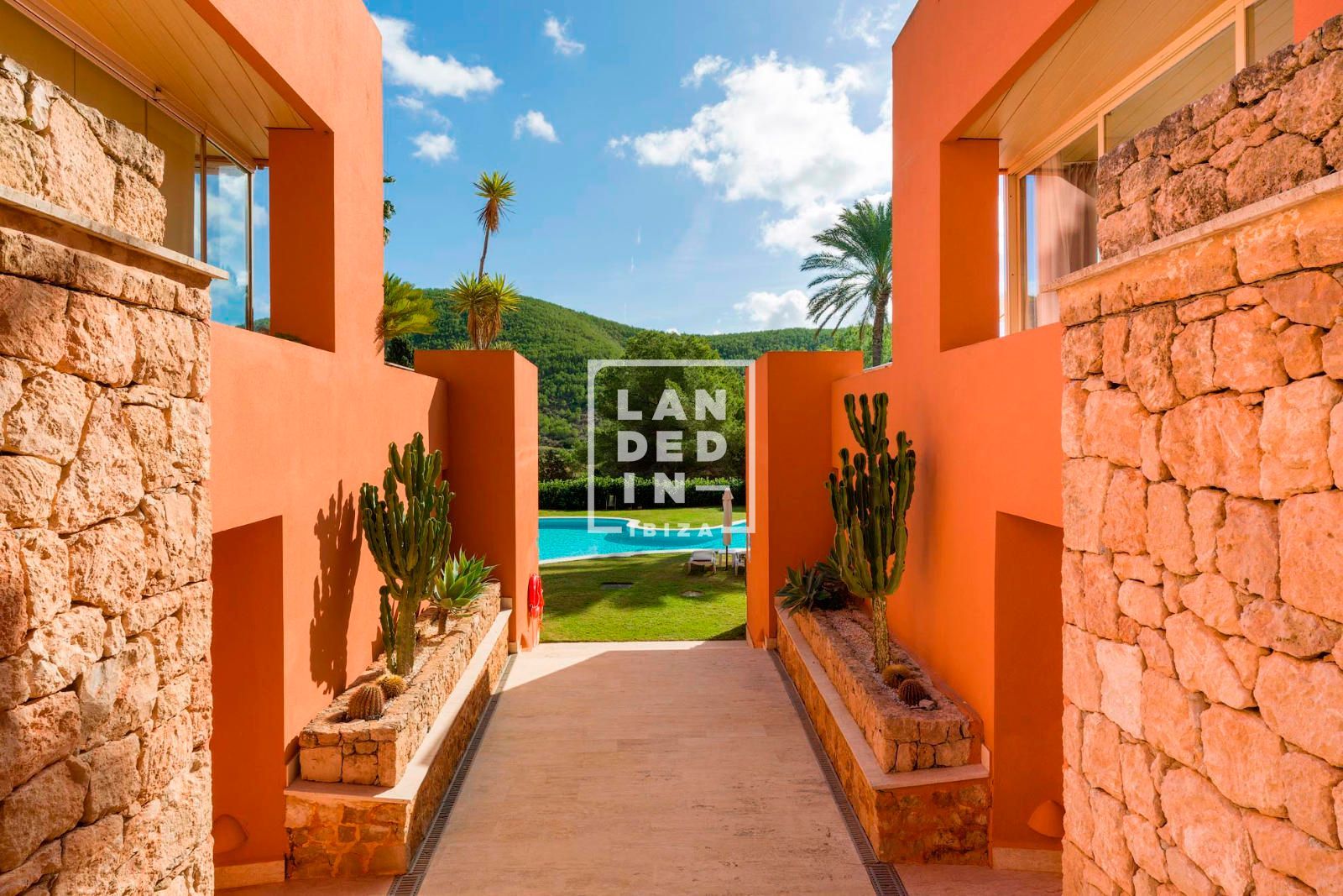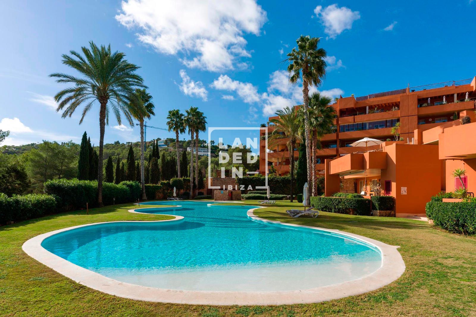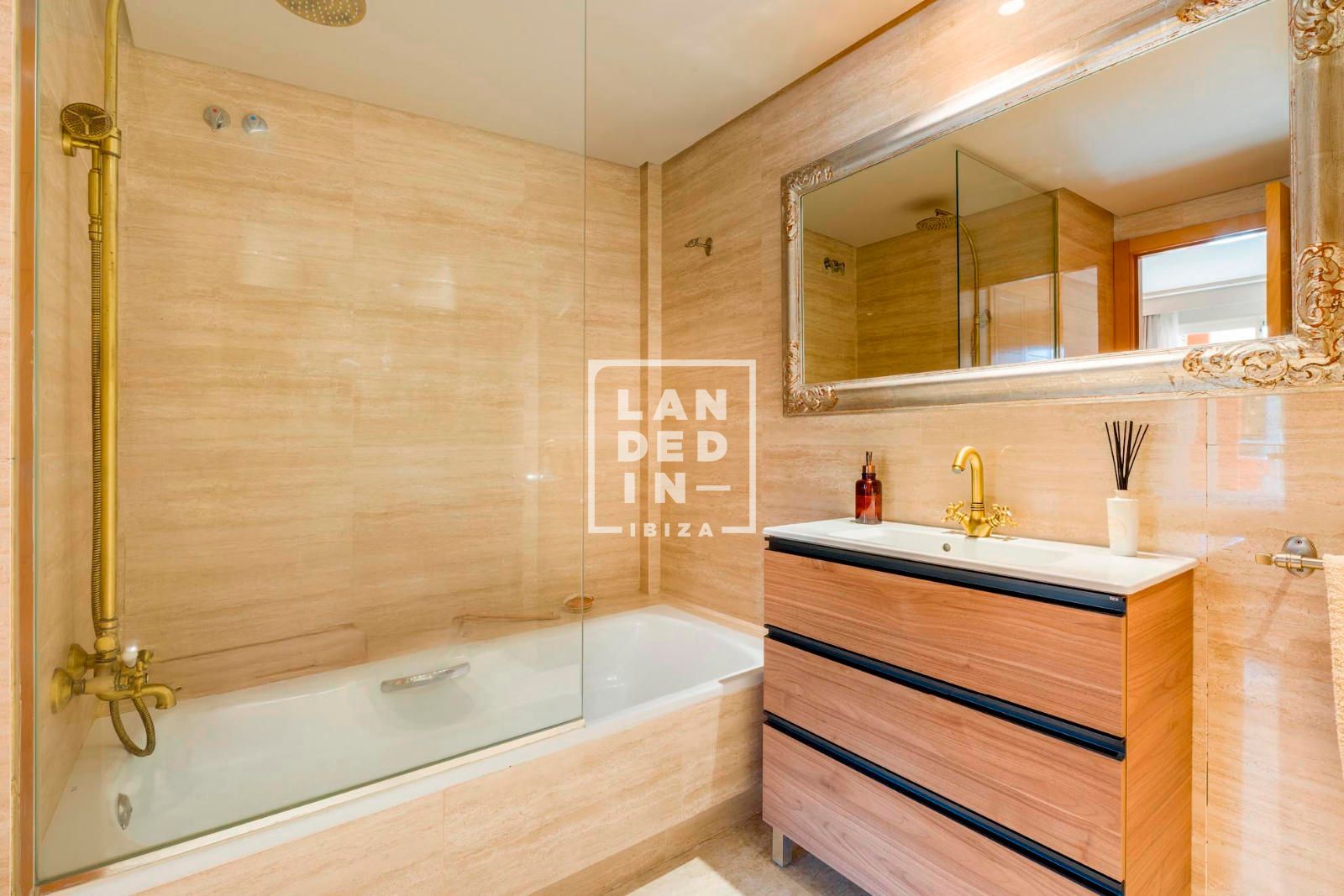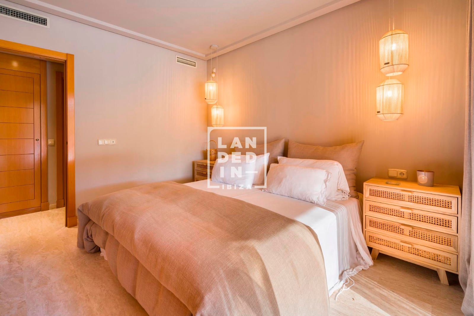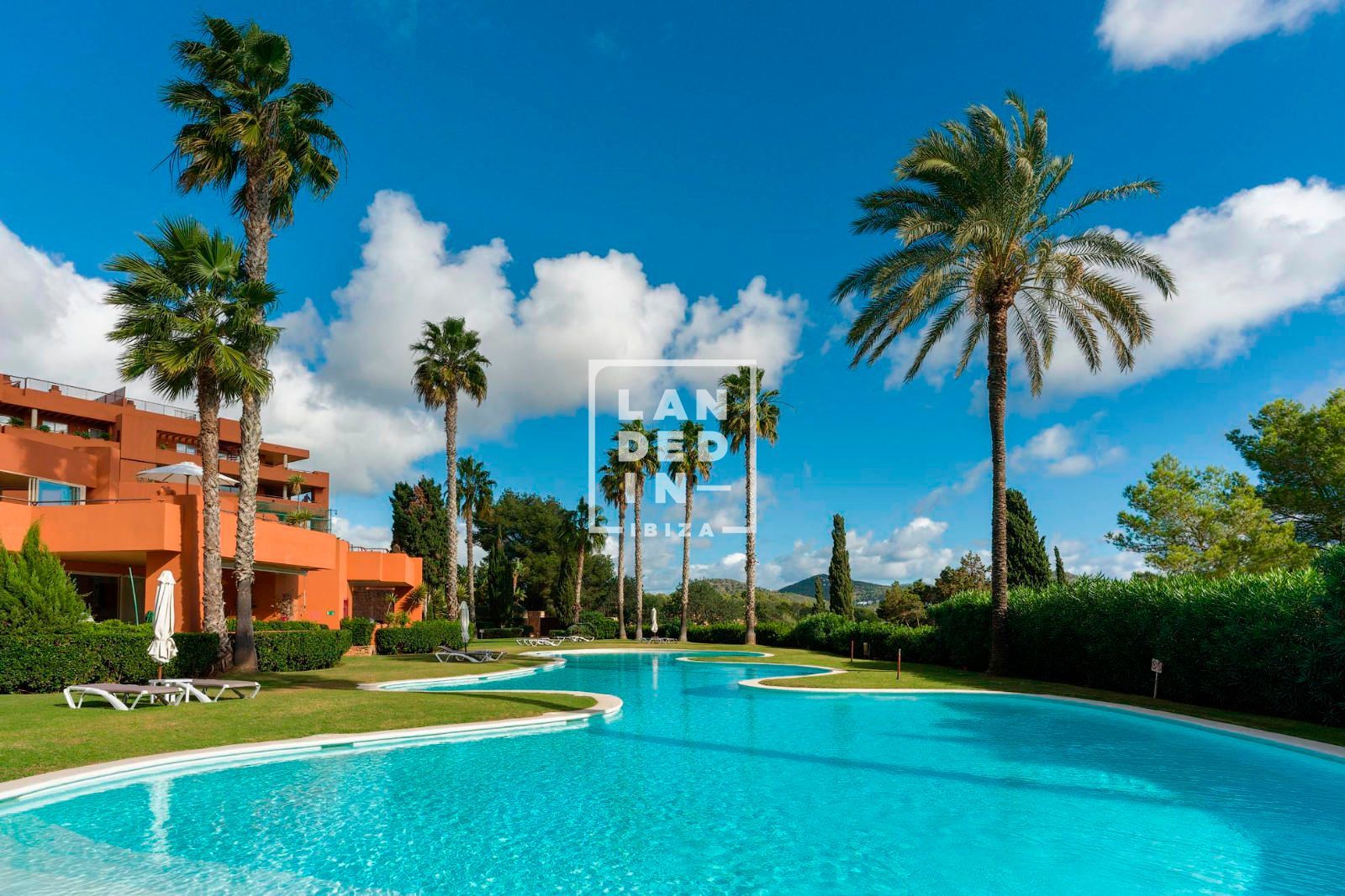 En el entorno sereno y exclusivo de Pinar Golf, Roca Llisa, se encuentra este piso de 232 m² que combina diseño contemporáneo, amplitud y el encanto natural de Ibiza. Un hogar pensado para quienes buscan tranquilidad, privacidad y conexión con la naturaleza sin renunciar al confort moderno.Distribuido en una sola planta, el inmueble cuenta con una superficie construida de 130 m² y una impresionante terraza de 102 m², donde la luz y el aire se convierten en protagonistas. Desde este espacio se disfrutan espectaculares vistas a la montaña, en un ambiente de calma total, ideal para relajarse, compartir una cena al aire libre o simplemente disfrutar del silencio del paisaje.La vivienda se distribuye en dos amplios dormitorios y dos baños, con una disposición funcional y equilibrada que aprovecha al máximo la luz natural. Se entrega completamente amueblada, lista para entrar a vivir, con estancias que se abren hacia la terraza y materiales que transmiten serenidad y continuidad visual entre interior y exterior.La propiedad incluye una plaza de garaje privada de 41 m² y un trastero de 15 m², aportando comodidad y espacio adicional al día a día.Dentro de la comunidad, los residentes disfrutan de una piscina y un gimnasio, ambos de uso comunitario, rodeados de zonas ajardinadas que refuerzan la sensación de bienestar y conexión con el entorno natural.Ubicado en una de las urbanizaciones más prestigiosas de la isla, este piso representa una oportunidad única para vivir el auténtico estilo de vida ibicenco: luz, calma y diseño en perfecta armonía con la naturaleza.