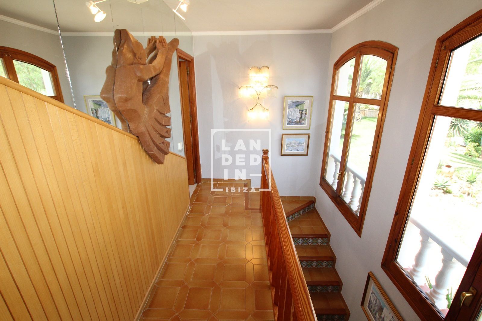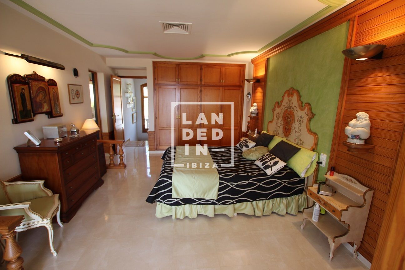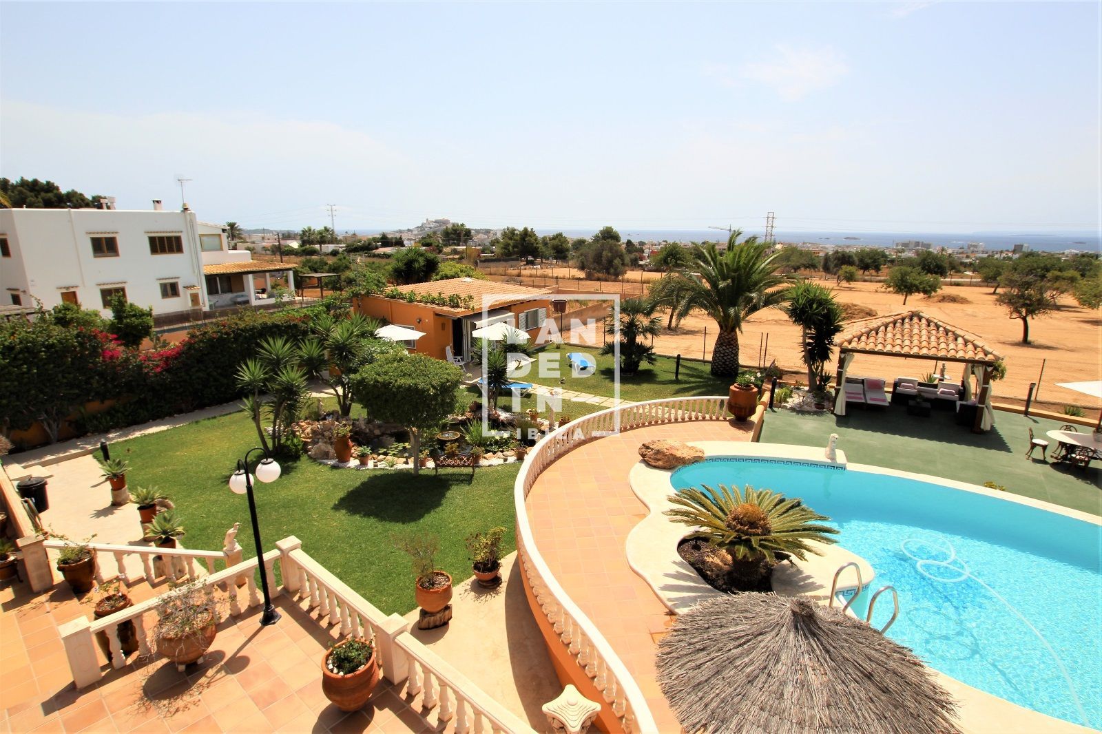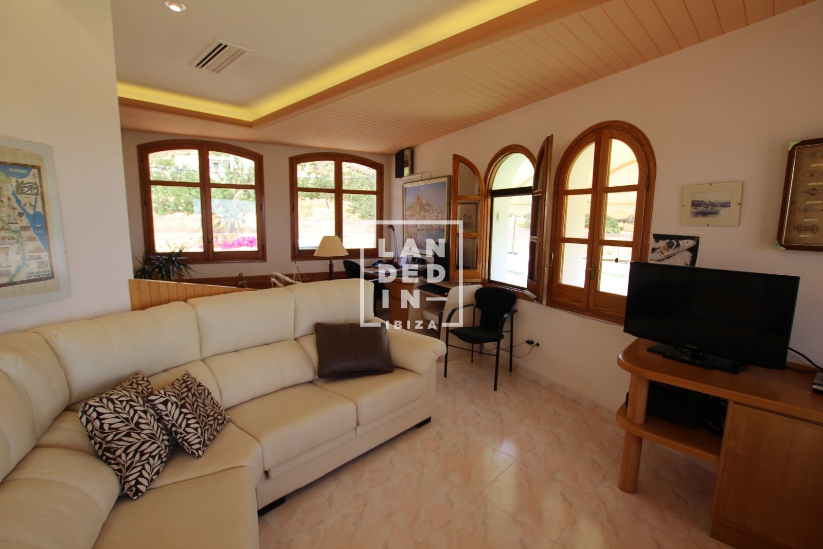 Se vende esta bonita Villa a sólo 2 km de Ibiza ciudad. Disfruta de bonitas vistas despejadas al mar y Formentera, montaña y Dalt Vila. Tiene 5 habitaciones más una casita de invitados.En la planta principal hay 3 habitaciones dobles y un baño; y en la segunda planta hay 2 habitaciones dobles muy grandes en suite con una terraza donde se pueden apreciar unas bonitas vistas al mar y Dalt Vila.Dispone de aire acondicionado en toda la vivienda, sistema de sonido en toda la casa y zona de la piscina. También cuenta con alarma interior y perimetral y riego automático. Tiene una BBQ de invierno con comedor-cocina y BBQ de verano. El apartamento de invitados dispone de un dormitorio con ducha, salón-comedor-cocina y lavadero separado.Cisterna con agua de lluvia con capacidad de 7 toneladas y descalcificador de agua para cocinar.Sala de máquinas y un trastero con ventilación.Garaje cerrado y otro exterior para 2 coches así como una zona de parking descubierto.