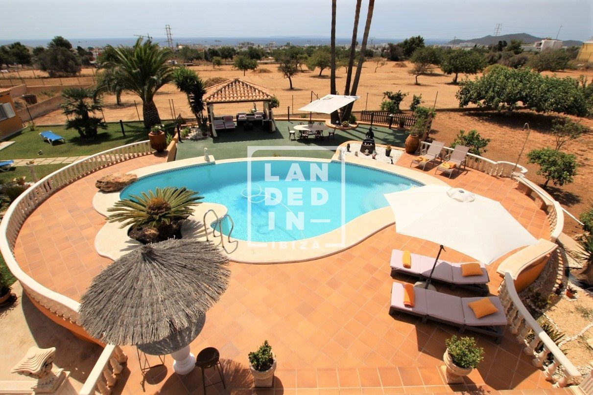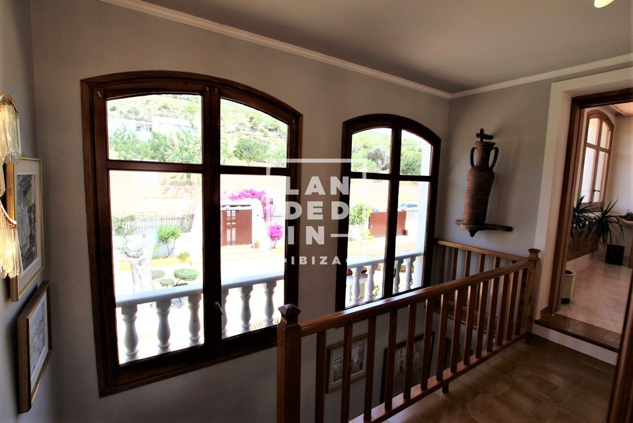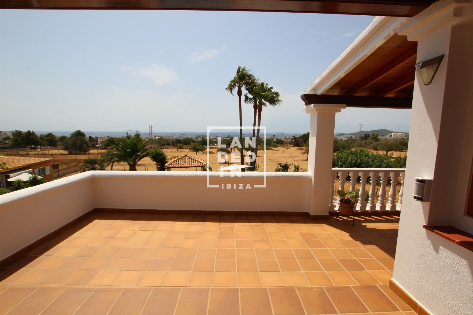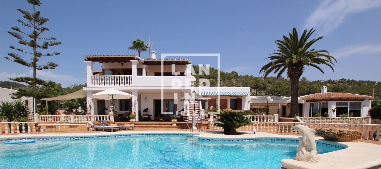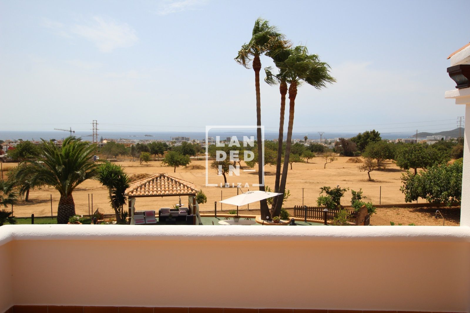 Se vende esta bonita Villa a sólo 2 km de Ibiza ciudad. Disfruta de bonitas vistas despejadas al mar y Formentera, montaña y Dalt Vila. Tiene 5 habitaciones más una casita de invitados.En la planta principal hay 3 habitaciones dobles y un baño; y en la segunda planta hay 2 habitaciones dobles muy grandes en suite con una terraza donde se pueden apreciar unas bonitas vistas al mar y Dalt Vila.Dispone de aire acondicionado en toda la vivienda, sistema de sonido en toda la casa y zona de la piscina. También cuenta con alarma interior y perimetral y riego automático. Tiene una BBQ de invierno con comedor-cocina y BBQ de verano. El apartamento de invitados dispone de un dormitorio con ducha, salón-comedor-cocina y lavadero separado.Cisterna con agua de lluvia con capacidad de 7 toneladas y descalcificador de agua para cocinar.Sala de máquinas y un trastero con ventilación.Garaje cerrado y otro exterior para 2 coches así como una zona de parking descubierto.