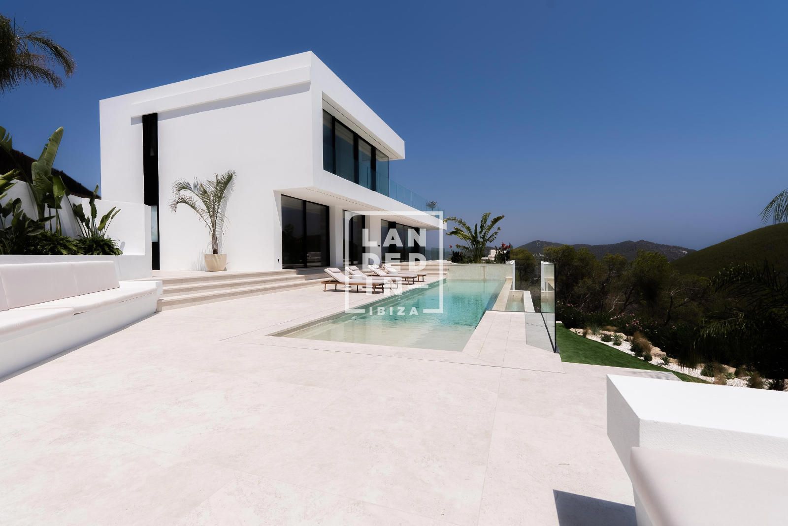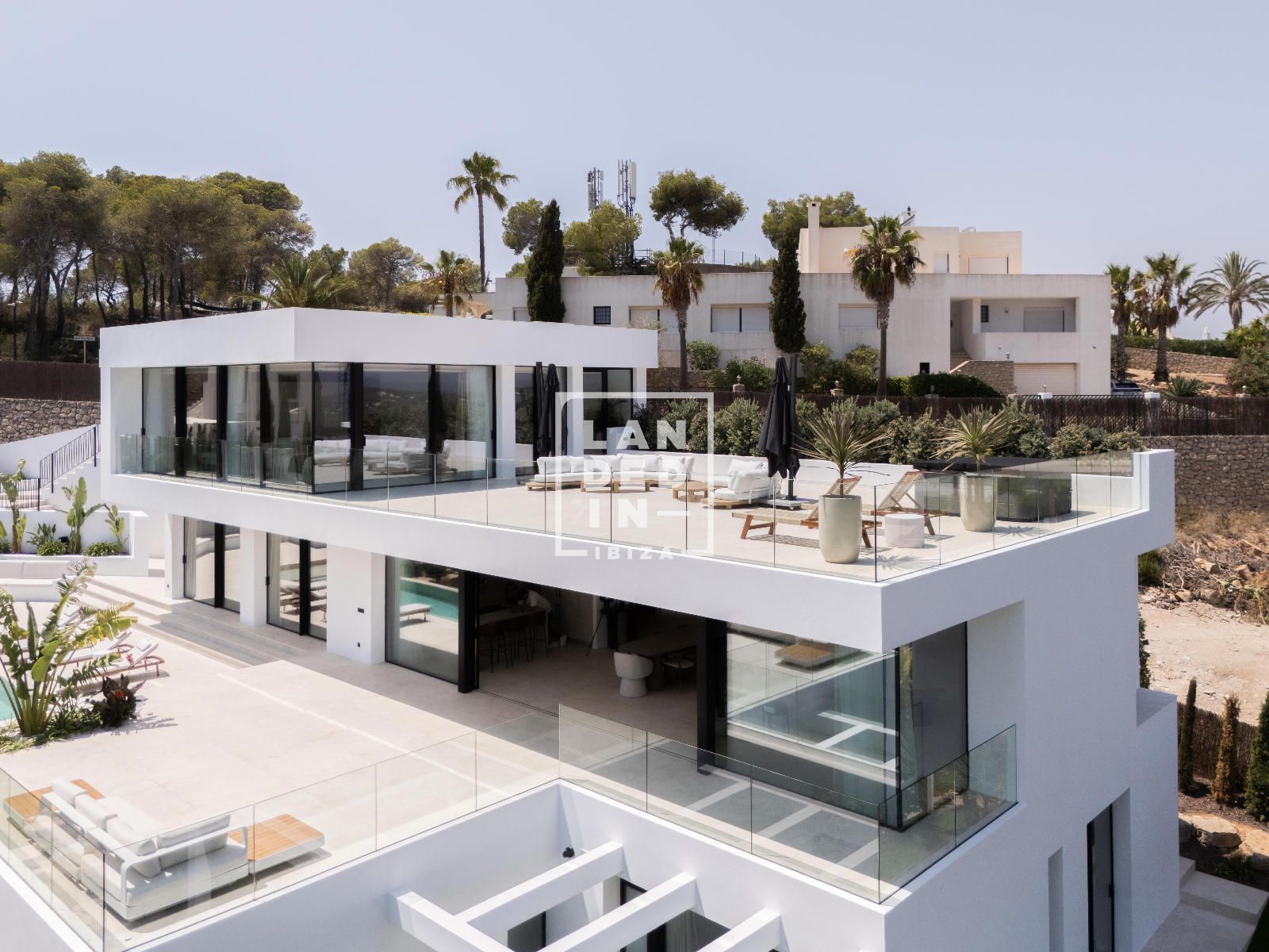 En el corazón del complejo residencial privado Roca Llisa, en la costa este de Ibiza y muy cerca del campo de golf, se encuentra esta villa contemporánea recientemente finalizada, un hogar concebido para disfrutar de la isla con el máximo nivel de privacidad, amplitud y diseño. A solo unos minutos de Santa Eulalia, del centro de Ibiza y del mar, esta residencia combina arquitectura moderna, estética mediterránea y una conexión constante con el paisaje de colinas verdes y el Mediterráneo brillante en el horizonte.Desde la zona de aparcamiento cubierto, una escalera exterior o un ascensor privado conducen al interior, donde cada espacio ha sido diseñado con atención absoluta al confort y la luz. La propiedad alberga siete dormitorios, todos con baño en suite, distribuidos para ofrecer independencia y armonía entre invitados y residentes. En la planta baja se encuentran tres de estas suites, además de un lavadero y una sala de recogida de aguas pluviales, un espacio versátil que ofrece un interesante potencial de ampliación según las necesidades futuras.En la planta principal, los espacios se expanden en un gran salón-comedor lleno de luz natural, conectado a una cocina de diseño totalmente equipada y a un aseo de cortesía. Dos dormitorios más con baño privado completan este nivel. Frente al salón, una terraza solárium con piscina infinita de 45 m² se convierte en el auténtico centro vital de la vivienda, un escenario idílico para descansar, recibir invitados y contemplar, cada mañana, los espectaculares amaneceres sobre el mar.La planta superior está reservada a una suite principal que se despliega como un santuario privado, con vestidor, sala adicional para uso como oficina o dormitorio infantil, un amplio baño en suite y salida directa a una terraza de relax desde donde se aprecian vistas panorámicas que recorren las colinas y la costa.La parcela de aproximadamente 1.565 m² está completamente vallada y envuelta por un jardín mediterráneo paisajístico, que se extiende a diferentes niveles y acompaña la arquitectura con una presencia natural serena. Varias terrazas rodean la villa, invitando a vivir al aire libre en cualquier época del año.Conectada a la red eléctrica pública y abastecida por el proveedor de agua del complejo, la propiedad está equipada con aire acondicionado frío/calor central, calefacción por suelo radiante, domótica y fibra óptica, garantizando un estilo de vida contemporáneo sin renunciar a la sencillez mediterránea.Amplia, luminosa y lista para entrar a vivir, esta residencia representa una oportunidad excepcional para quienes buscan una villa moderna con vistas al mar, privacidad, orientación este/sureste y un alto nivel de confort, en una de las comunidades más exclusivas de la isla. A ello se suma la posibilidad de personalizar los espacios de la planta inferior —ya sea creando una zona wellness, un gimnasio privado o nuevas suites para invitados—, permitiendo llevar la propiedad aún más lejos en términos de estilo y experiencia.Un hogar diseñado para disfrutar Ibiza desde la elegancia, la luz y la calma.